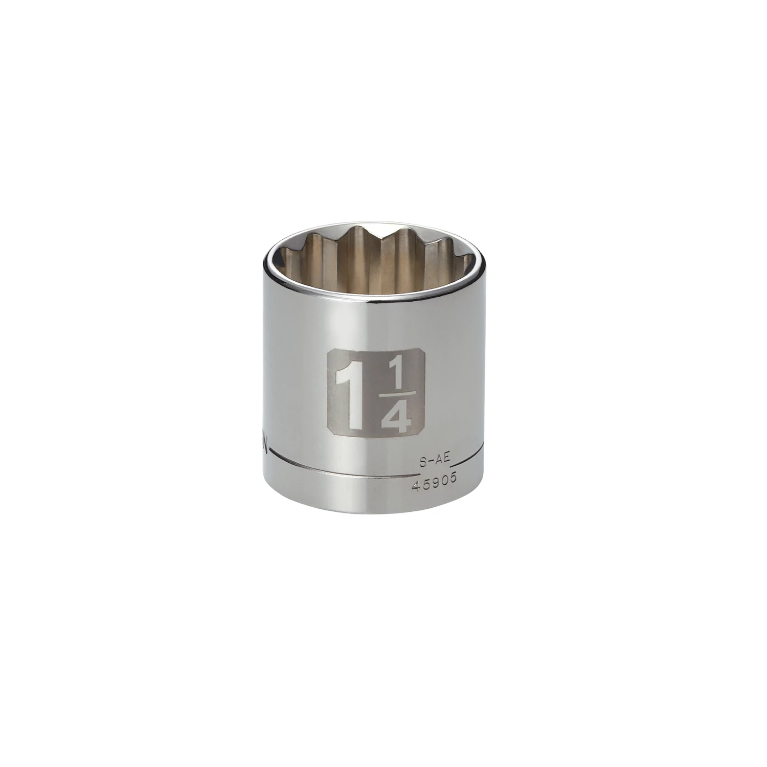 Tight nuts or bolts in cramped spaces won’t stop the job from getting done when you have the Craftsman 1-1/4″ x 1/2″ drive socket. Made from durable alloy steel, this versatile socket features 12 points of contact for a secure fit and easy turning. Large, permanent, laser-etched marking makes it easy to locate and identify, while allowing it to resist chipping, fading and corroding. The overall versatile design makes swapping between tools a snap.