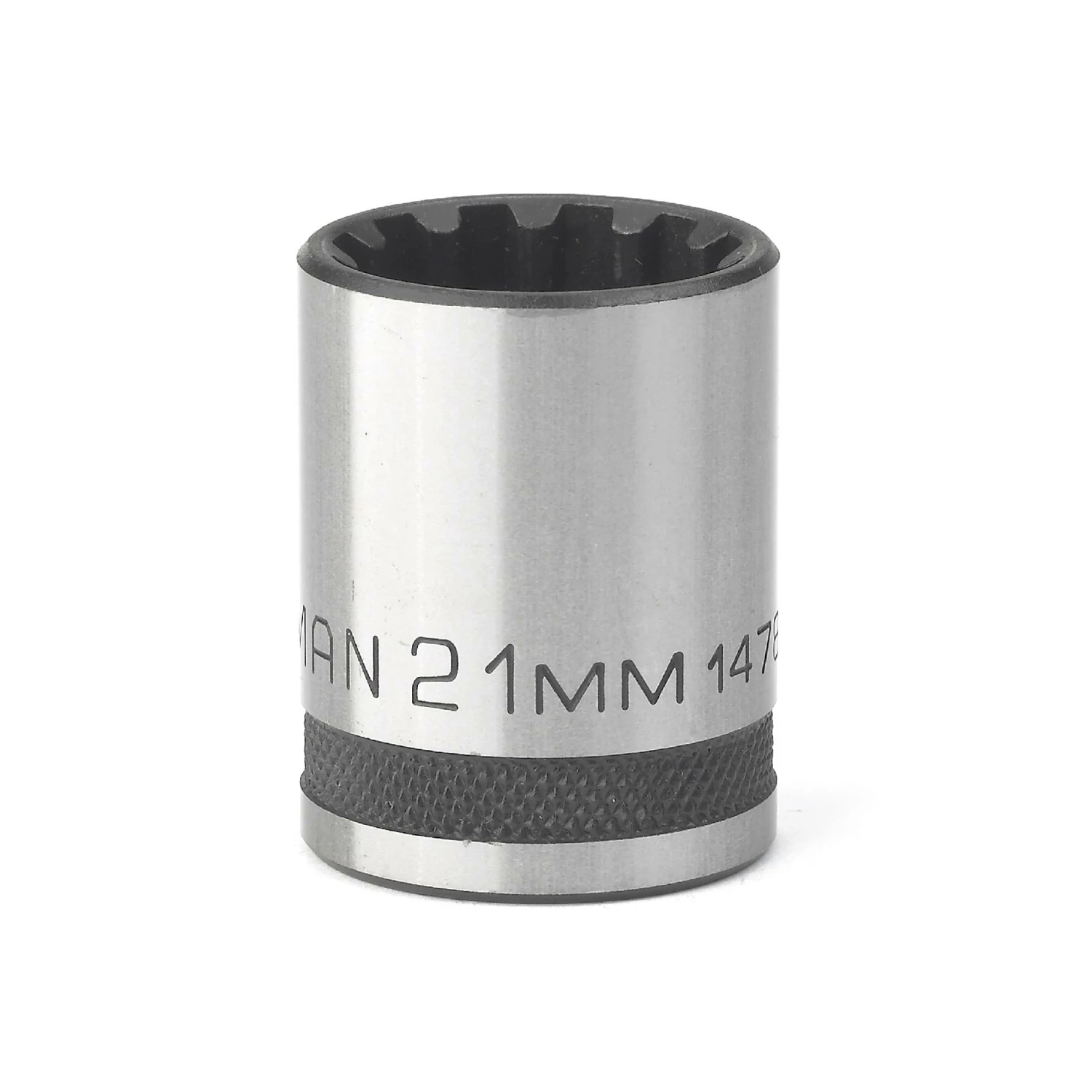 Built to deliver torquey turns for decades while making some serious space in your tool drawer, this 21MM universal socket 1/2-in. drive features a unique socket design that grabs 4, 6, 12 point, spline, external Torx and even partially rounded fasteners. By focusing pressure on the side walls of beat-up nuts and bolts, it delivers a grip that you can trust, and crafted from high quality alloyed steel, it’s built for a lifetime of dependable service.