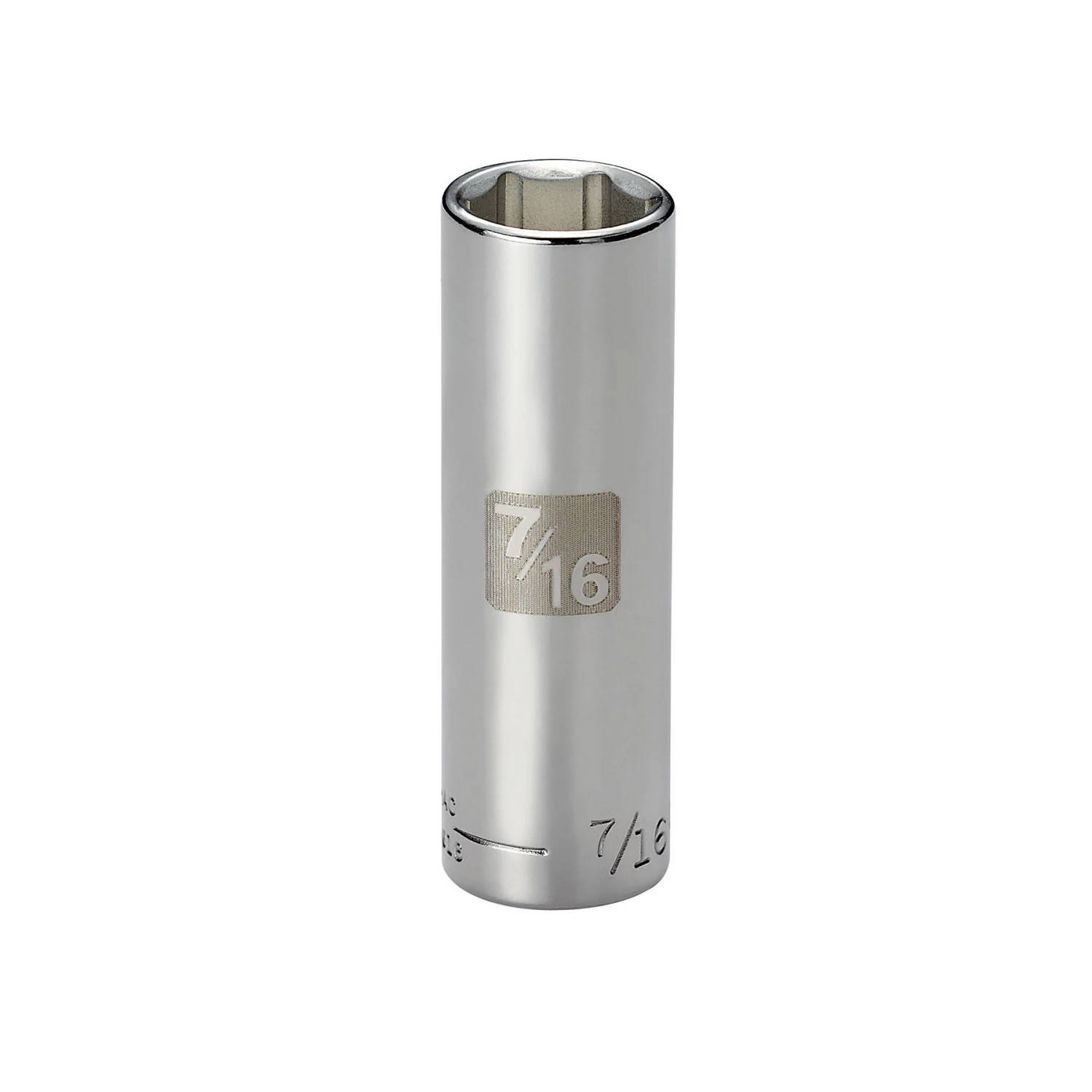 Featuring highly visible laser-etched size markings that are easy to read, the Craftsman 1/4″ drive 6 pt. 7/16″ socket offers quick and easy identification even in low light settings. The durable alloy steel construction won’t chip, fade or corrode with frequent use. Headlock grip gives more contact on the flats of the fastener for more turning force.