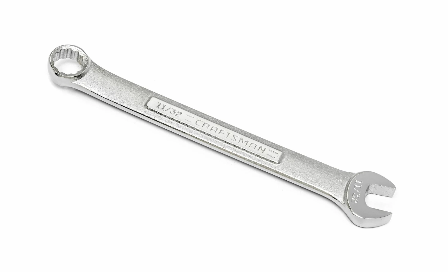 Make fast work of fasteners with the Craftsman 11/32″ 12-Point Combination Wrench. This hand tool is forged from tough alloy steel, and then heat treated, oil quenched and tempered for a uniform hardness and maximum strength. You’ll get the tough turning power and the ability to get into tight spots with ease.