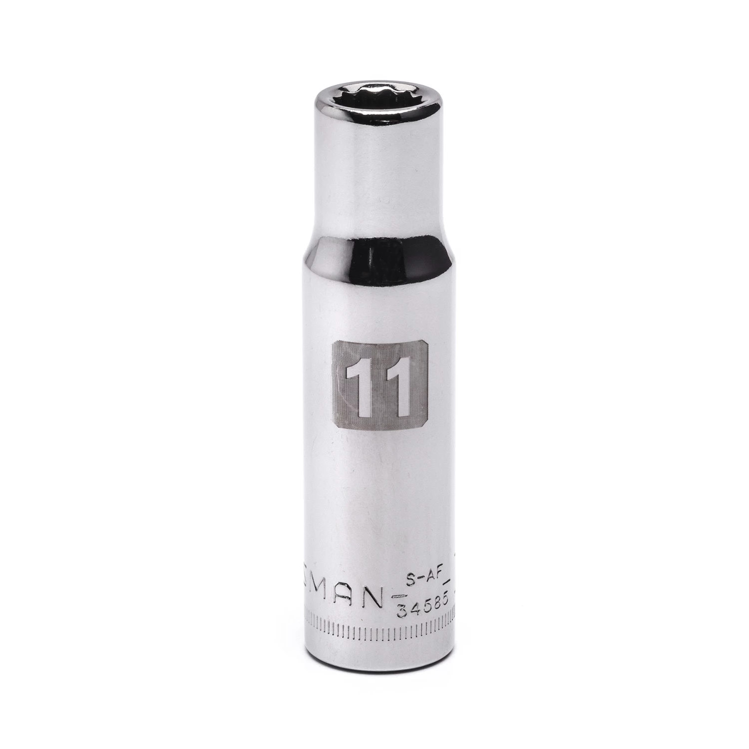 Grab the Craftsman 11mm 1/2″ drive easy-to-read deep socket for work on the bench or under the hood. The deep design gives you a little extra room when tightening or loosening a stubborn nut or bolt. Easy-to-read markings increase visibility even in low light. Durable allow steel resists fading and corrosion.