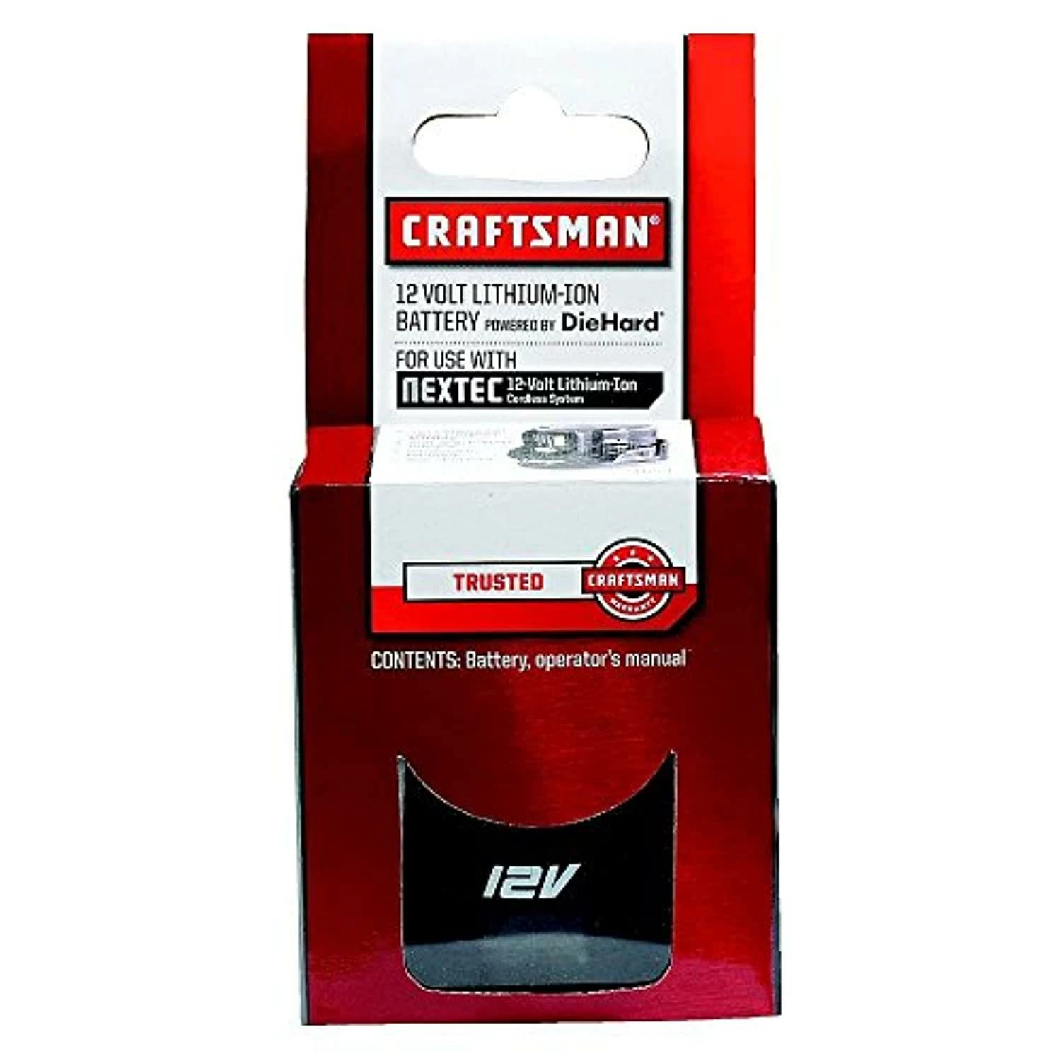 Get High Performance from Your Nextec Tools with the 12 Volt Compact Battery from Craftsman The Craftsman Nextec Compact Lithium-Ion battery is lightweight and compact to make operating your power tools a breeze. Besides it’s compact design, the battery provides a powerful performance that is better than most NiCad batteries. This lithium-ion battery offers unparalleled run time to increase your work efficiency. Featuring a soft-grip release and anti-skid base, the 12 Volt Compact battery comes fully assembled. Ergonomically designed, this battery provides enhanced grip while protecting itself and the work surface. This high-performance battery is compatible with the Craftsman NEXTEC 12.0V Lithium-Ion Circular Saw, Craftsman 17438 Nextec 12-volt Lithium-Ion Cordless Multi-Tool, Craftsman NEXTEC 12.0 Volt G2 Hammerhead and Nextec 12-volt Cordless Drill/Driver. It’s easy to care for your Nextec tools and enhance their performance with this extra-strength battery. With the Craftsman Nextec Compact Lithium-Ion battery, it’s easy to give a power boost to your Nextec tools The kit includes the 12 Volt battery and comes fully assembled Features an anti-skid base and soft-grip battery release for ease of use Reduces work fatigue with its lightweight and compact design Weight :0.4 lbs. One year limited warranty Specifications Product Specifications Product Overview: Fits Brands/Models:Craftsman Type:Lithium ion Battery Batteries: Number of Batteries Included:1 Rechargeable:Yes Charge Time (Hrs.):0.5 Battery Voltage:12 Dimensions and Weight: Item Weight (lbs.):0.4 lbs. Overall Dimensions:3 x 4 x 3 in.PROP 65 WARNING: This product can expose you to some kind of chemical, which is known to the State of California to cause cancer. For more information, go to www.P65Warnings.ca.gov.