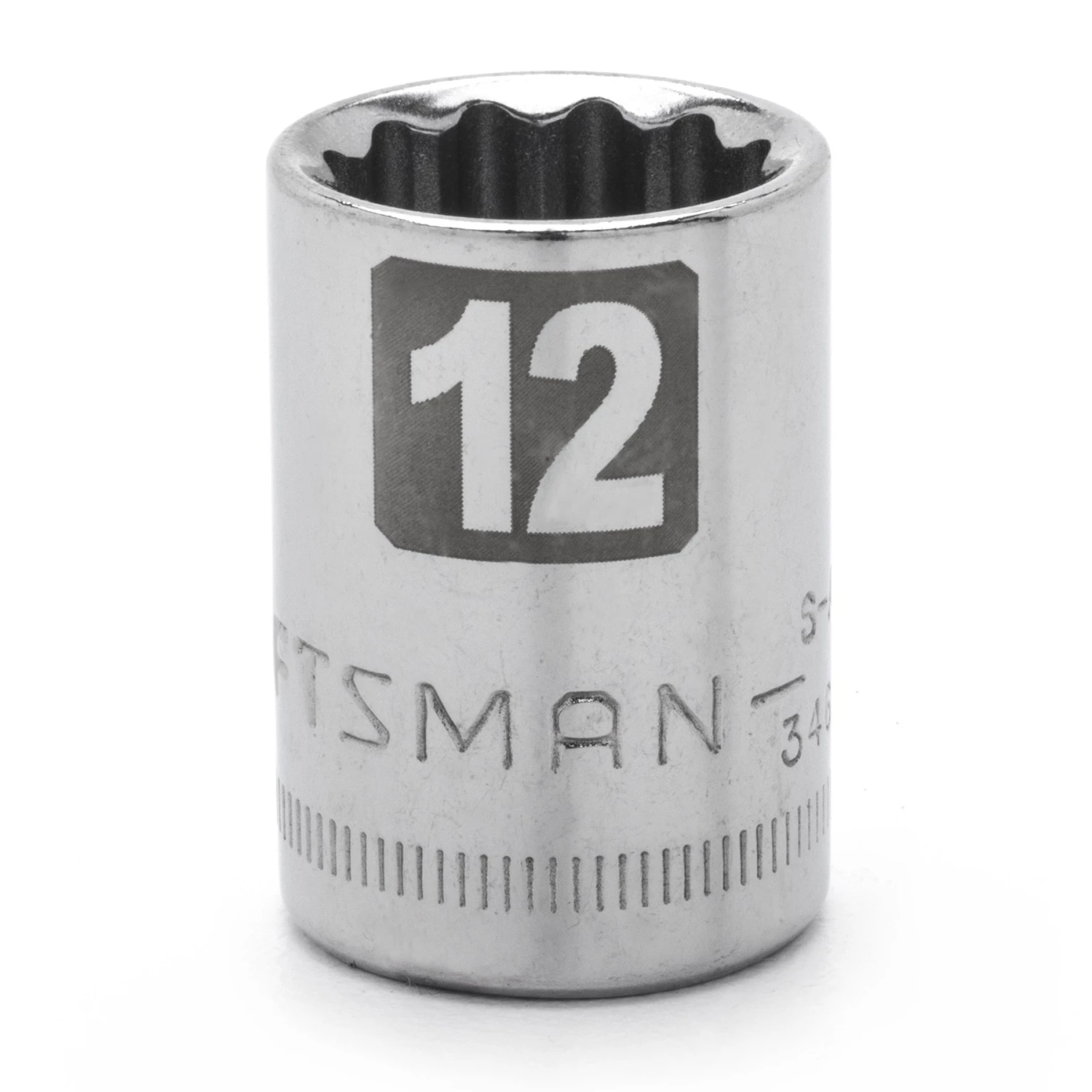 Move through every project efficiently with the Craftsman 12mm 3/8″ drive socket. A laser-etched size marking makes it easy to locate the right socket for the job and is clear in low-lit or greasy environments. With a 12-point configuration, this socket allows you to work in cramped areas where turning capacity is limited.
