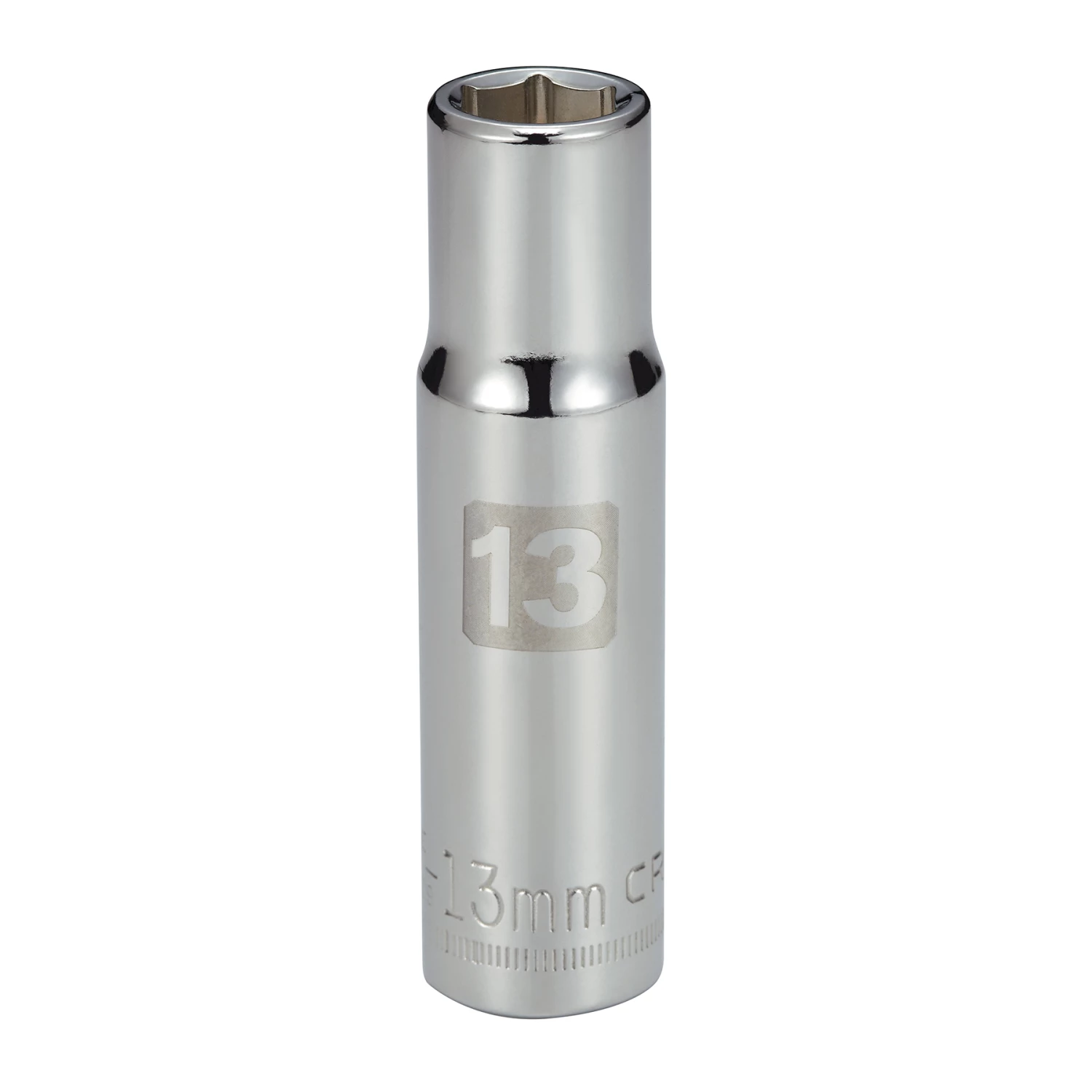 The 13mm easy-to-read socket, 6 pt. deep-depth 1/2 in. dr. features clear markings for easy identification, even in low light. The standard socket, 13mm in size, gets your wrench into smaller spaces than an impact socket. It is durable, too, made of tough steel, so it won’t chip, fade or corrode. This socket is a great choice for a range of home and DIY projects.