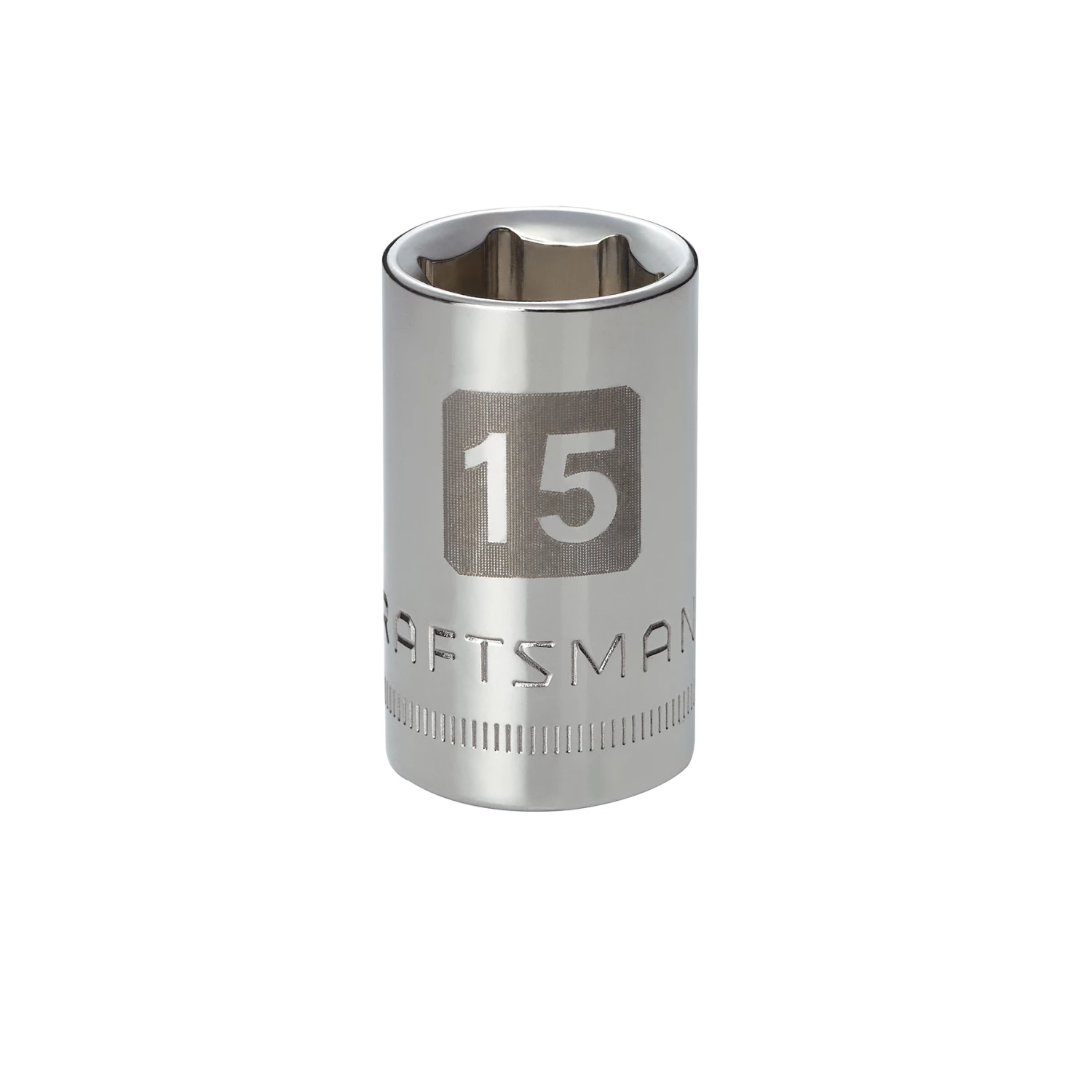 You’ll never squint or fumble for the right piece again when you have the Craftsman 15mm”1/2″ drive easy-to-read standard socket. Laser-etched size marking makes it easy to locate this socket when you’re on the job. Plus, the permanent marking resists chipping, fading and corroding. Six-point configuration allows you to work in cramped areas where turning capacity is limited.