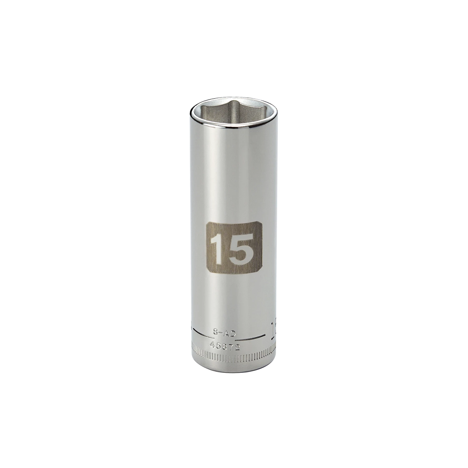 Whether you’re under the hood or behind an appliance, this easy-to-read 15mm socket from Craftsman gives you the size you need to get the job done. Perfect for ratchets, extensions, angle adapters or torque wrenches with 3/8″ drives, this deep socket comes with 6 points to help you finish heavier projects.