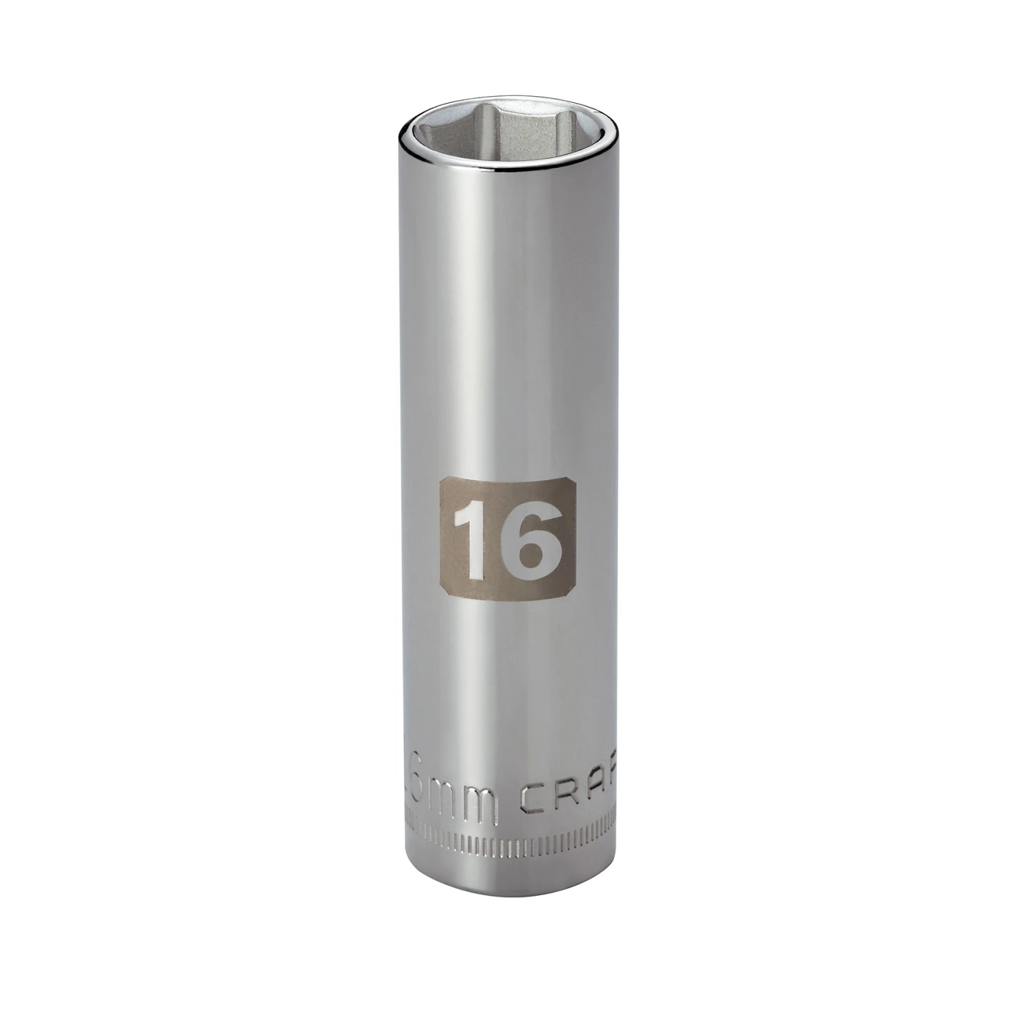 Go deep into your project with this Craftsman 16mm easy-to-read 1/2″ drive deep depth socket. Six points of contact ensure a tight grip, while the clearly marked sizing ensures you won’t be fussing looking for the tool you need. Easily fasten and remove extra-long hardware without having to adjust your grip with this socket.
