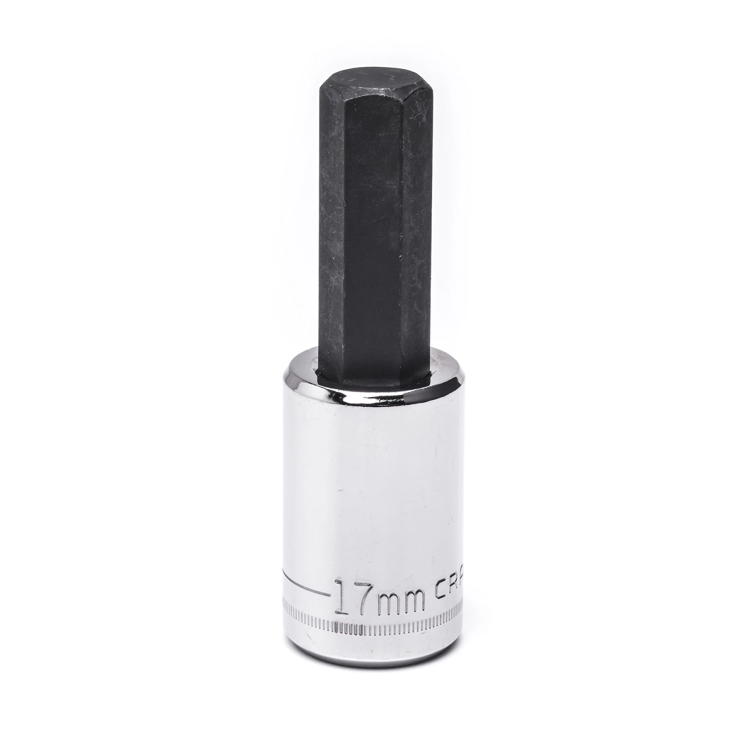 This 17mm hex bit socket 1/2-in. drive puts serious torque at your fingertips. The hex bit socket is drop forged steel with a silver finish. With a 1/2-inch drive and six contact points, this hex bit socket will get a secure grip to protect your hardware and give you more power on those stubborn bolts.