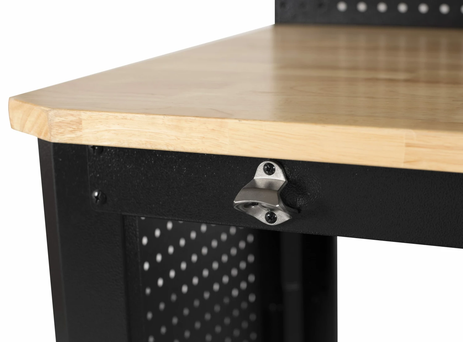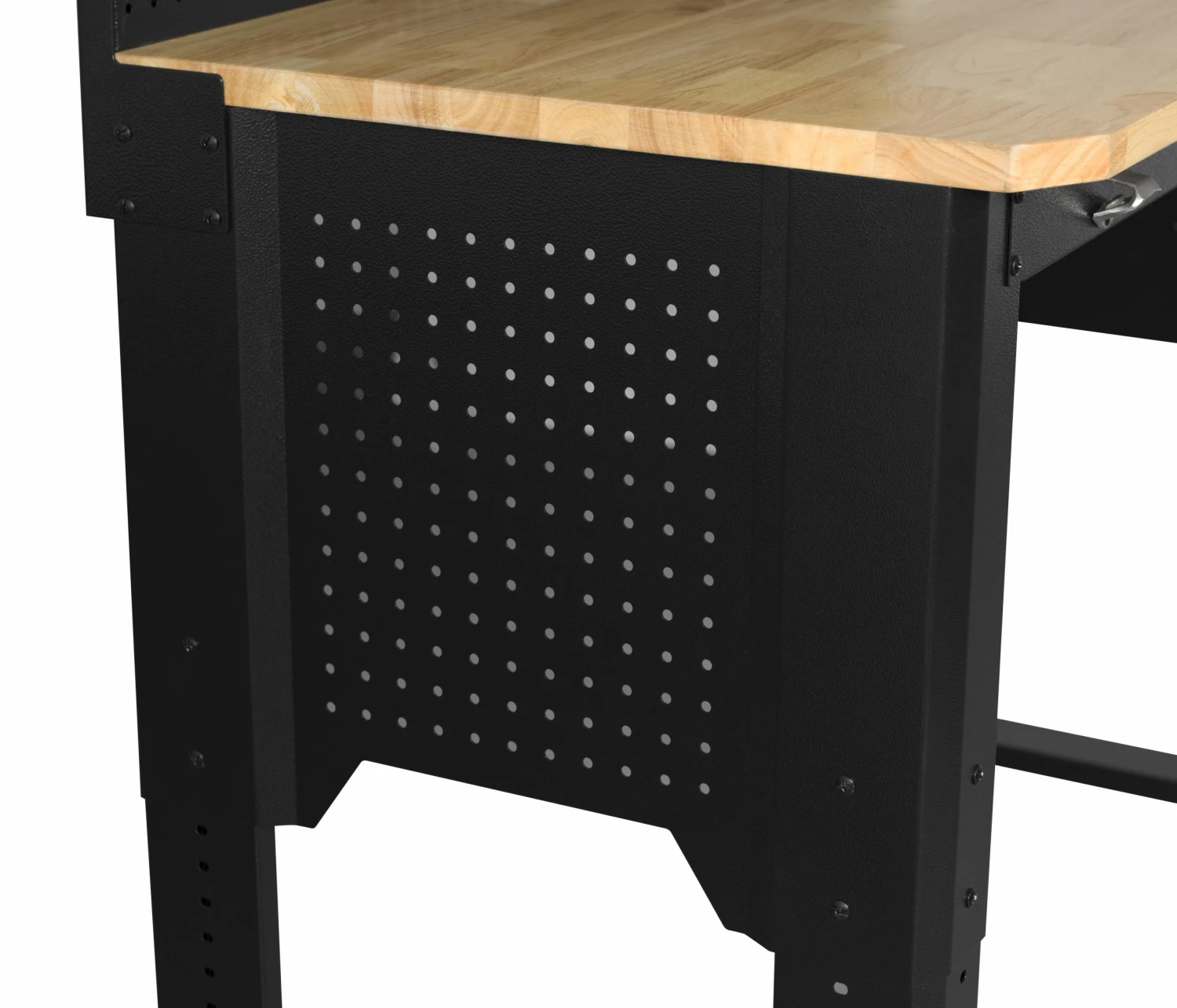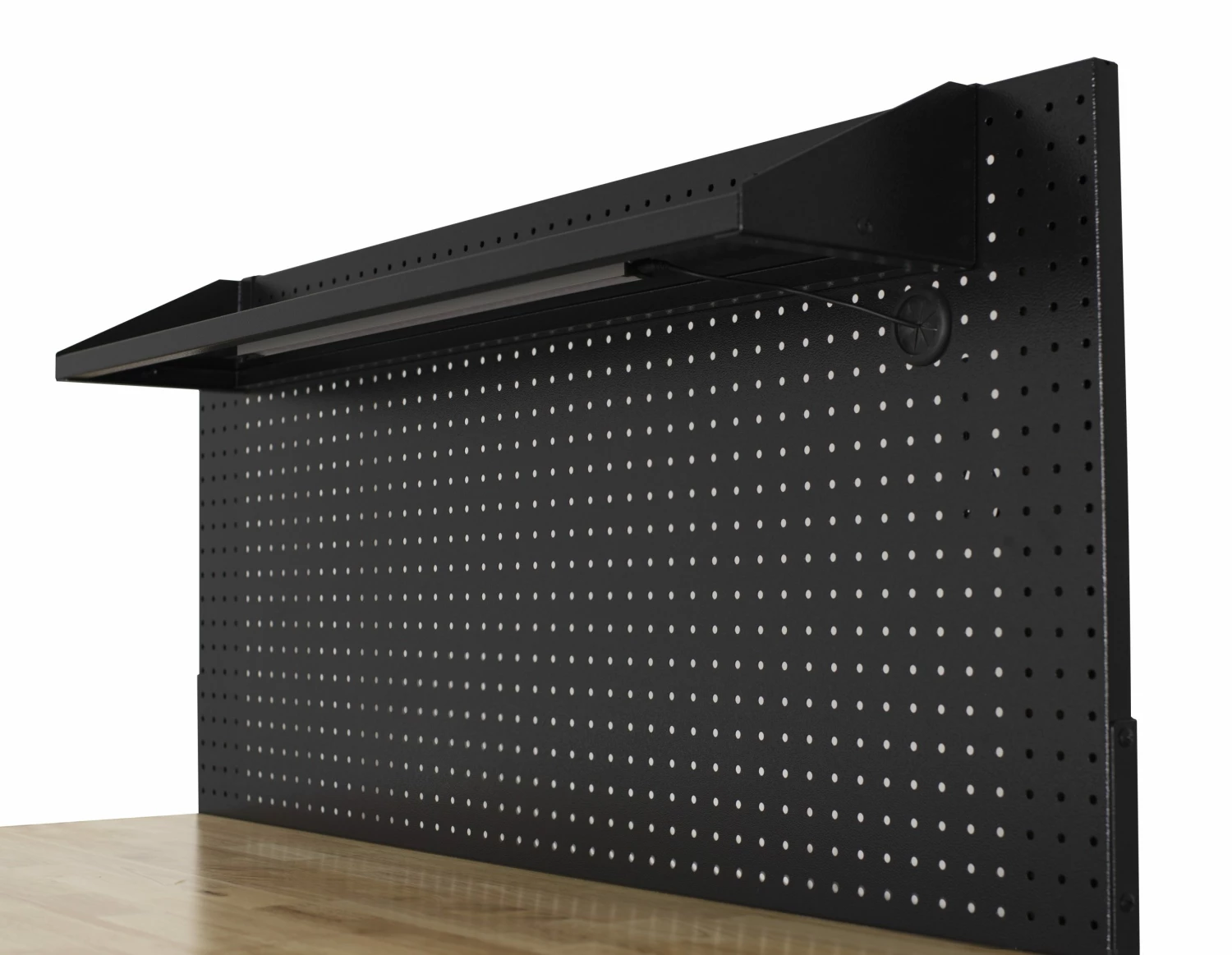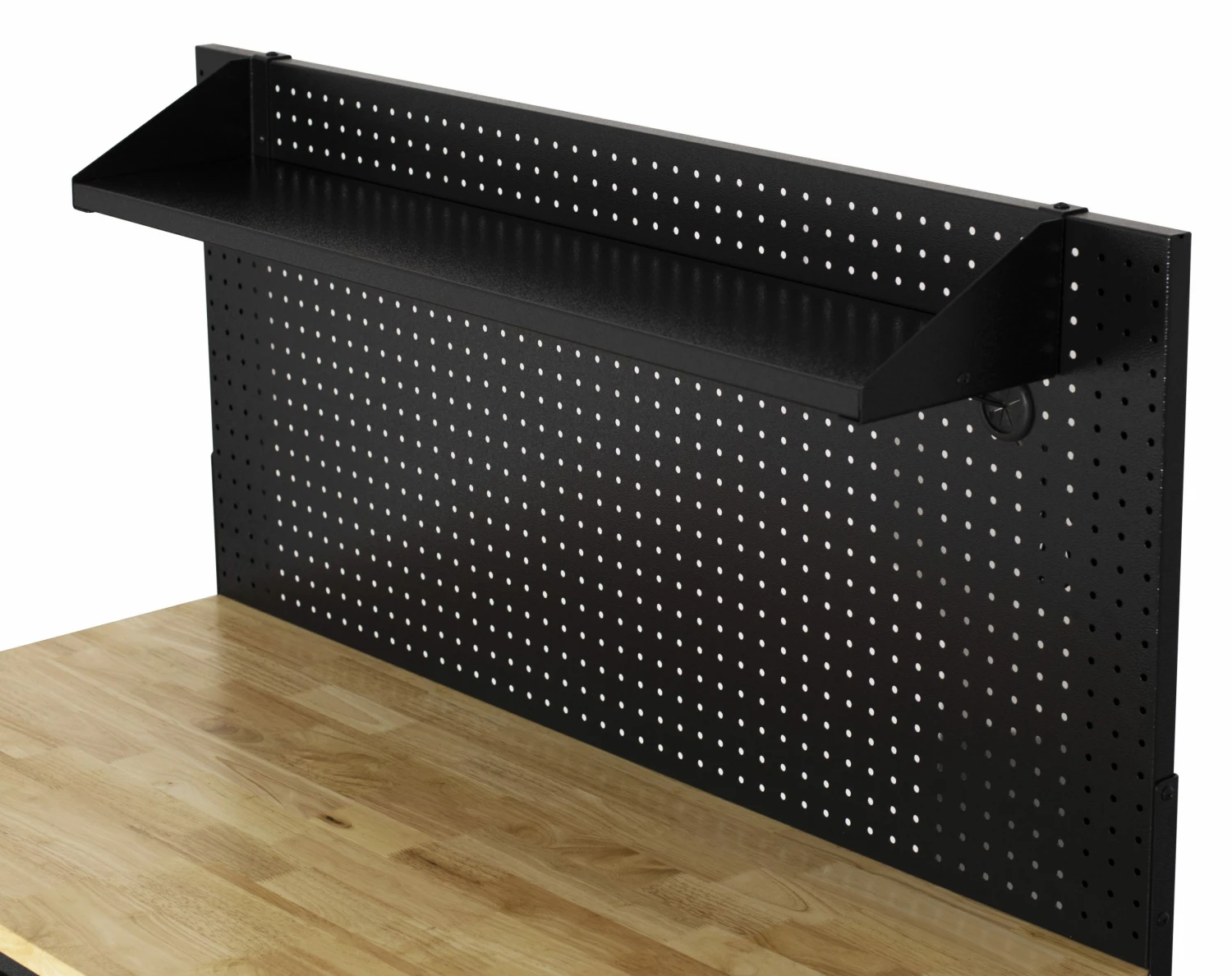The Craftsman 48 in. Adjustable Height Workbench with Pegboard and LED Light would provide a great place to work on projects in your garage or other workspace. The legs are adjustable to create a worktable height between 32-44 in. The workbench has a 1 in. thick solid wood top that creates a 1,152 sq. in. work surface. Attached to the rear of the workbench is a pegboard that can be used to organize and allows quick access to any tool or supply. There is also a long shelf that provides additional storage space. Underneath the shelf is a magnetic LED light that can be used to illuminate your workspace. Finally, there is an integrated power strip with 6 outlets and 2 USB ports that can power any tool or electronic device. Combine this workbench with other Craftsman garage storage items (sold separately) to create your optimal storage solution.