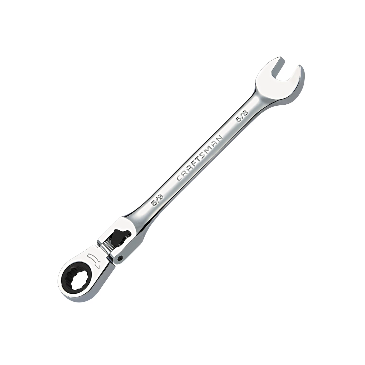 This Craftsman 5/8″ locking flex ratcheting combination wrench is made with 180 degree head rotation and 11 locking positions, allowing you to reach any fastener. Easily get to awkward angles without sacrificing comfort, control or strength with this wrench. The combination of a ratcheting box end and open end head, this wrench ensures strength and convenience. A slim handle helps in tight spaces, while 12 points of contact ensure grip.