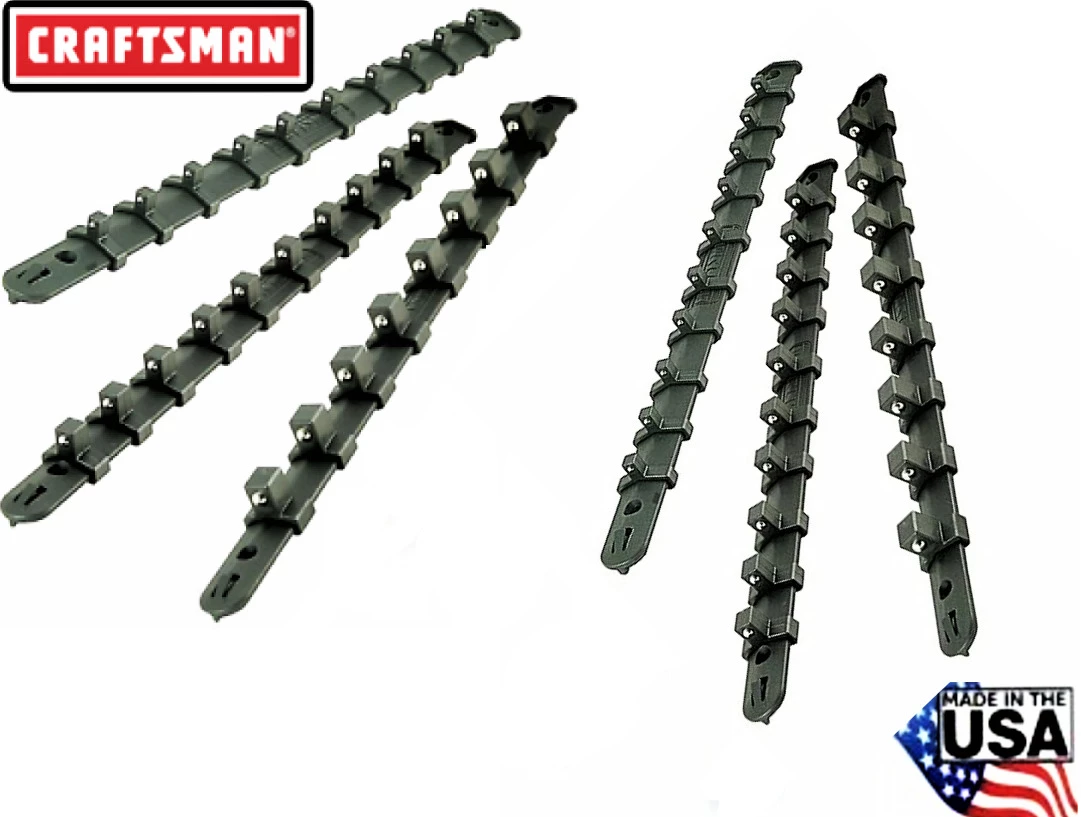 6pc CRAFTSMAN SOCKET HOLDER RAILS RACKS 1/4 3/8″ 1/2″ MOUNTABLE USA MADE BLACK