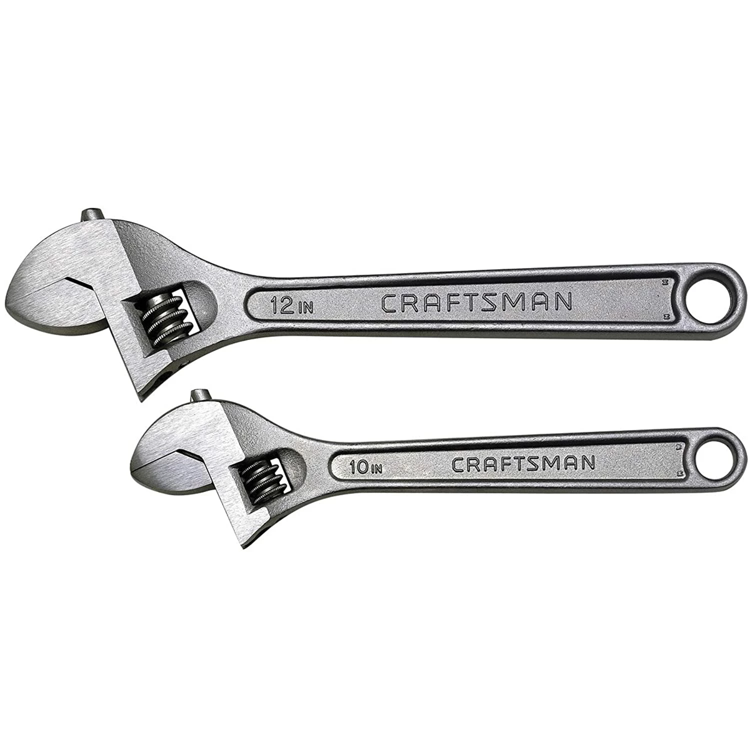The Craftsman 2 Piece Adjustable Wrench Set Includes 10-Inch And 12-Inch Adjustable Wrenches. Extra Wide Jaw Openings For Increased Capacity. Wide Beam Handle For Comfort And Control. Quality Forged Alloy Steel. Precision Broached, Hardened Steel