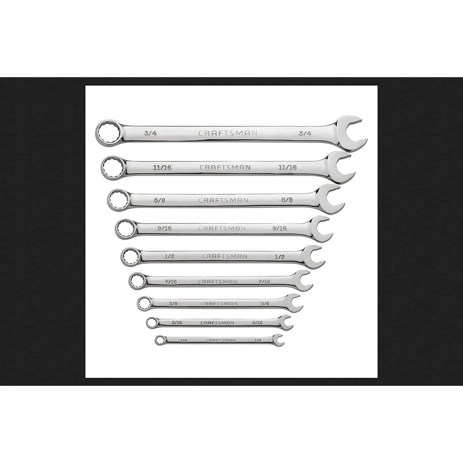 Craftsman 9 Pc. Standard 12 Pt. Full Polish Long Pattern Combination Wrench Set