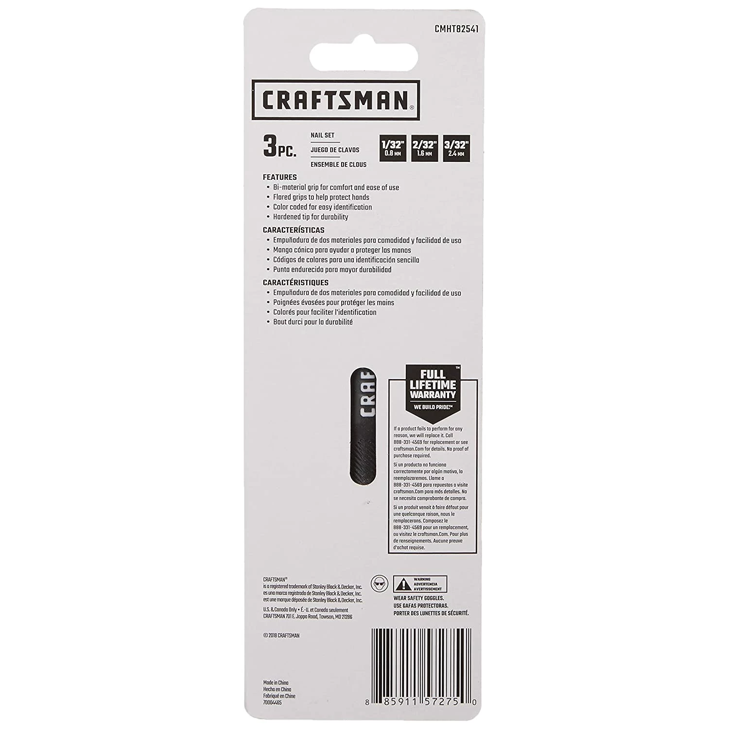 The Craftsman 3Pc Nailset Has A Comfortable Bi-Material Grip With A Color Coded Handle To Make It Easier To Identify The Size Of Each Tip Without Removing It From Your Tool