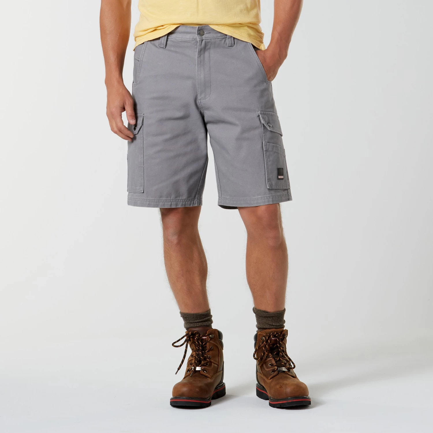 Get the durability you need in these men’s work shorts from Craftsman. All-cotton canvas is treated to Teflon coating to resist water, oil and stains. The cut allows room through the seat and extends to a classic straight leg ending at the knee. Cargo pockets ensure convenience.