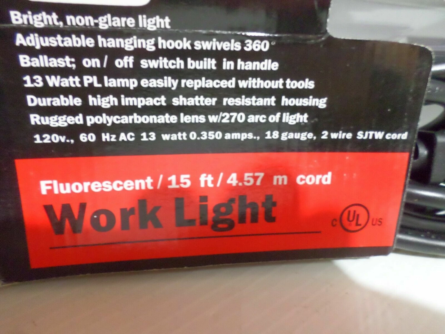 NEW Craftsman Fluorescent Work Light 13 Watt 15 Ft 18/2 Cord 48954