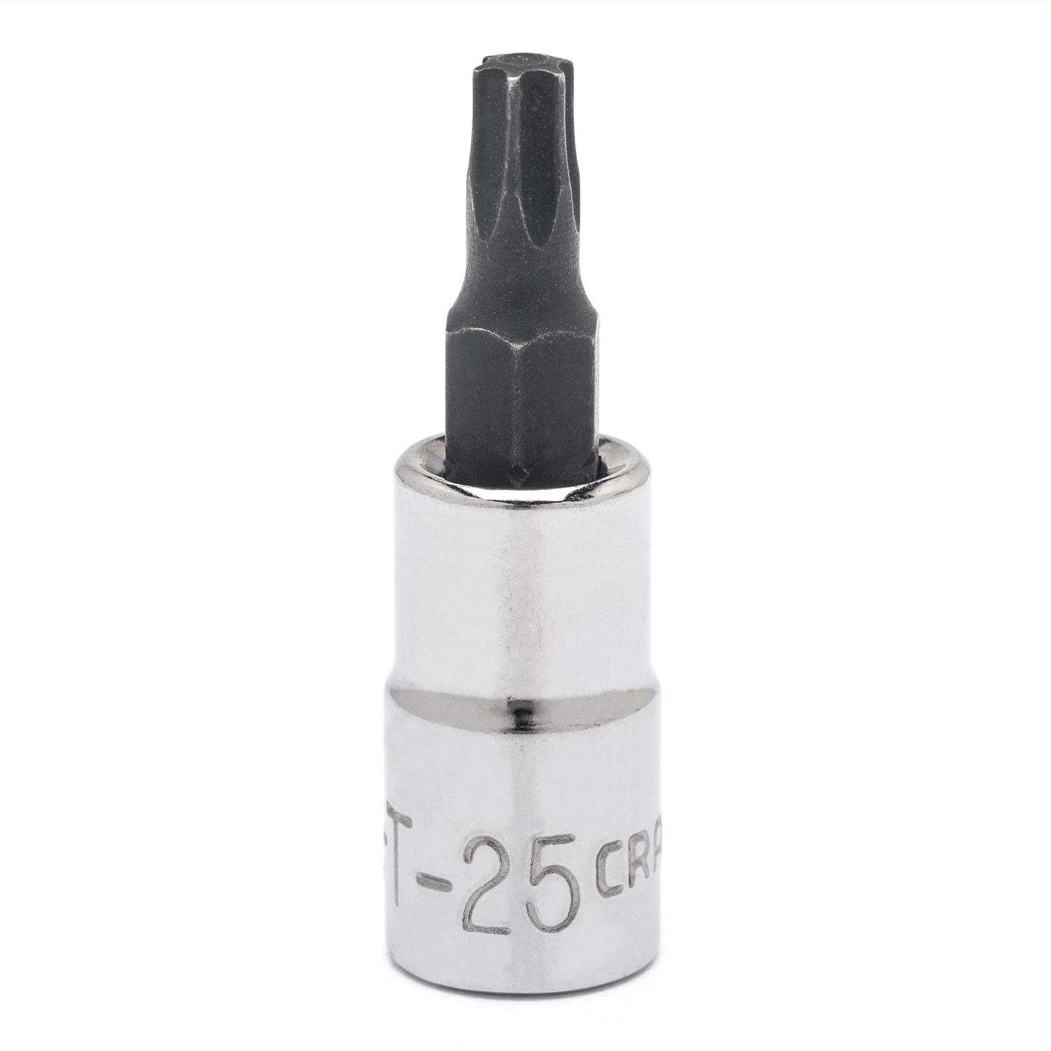 Use the Craftsman T25 Torx socket with a torque wrench or ratchet, and you’ll be ready to loosen or tighten screws and bolts. When used with a wrench or ratchet, this alloy steel socket allows you to use just as much or little force as you need.