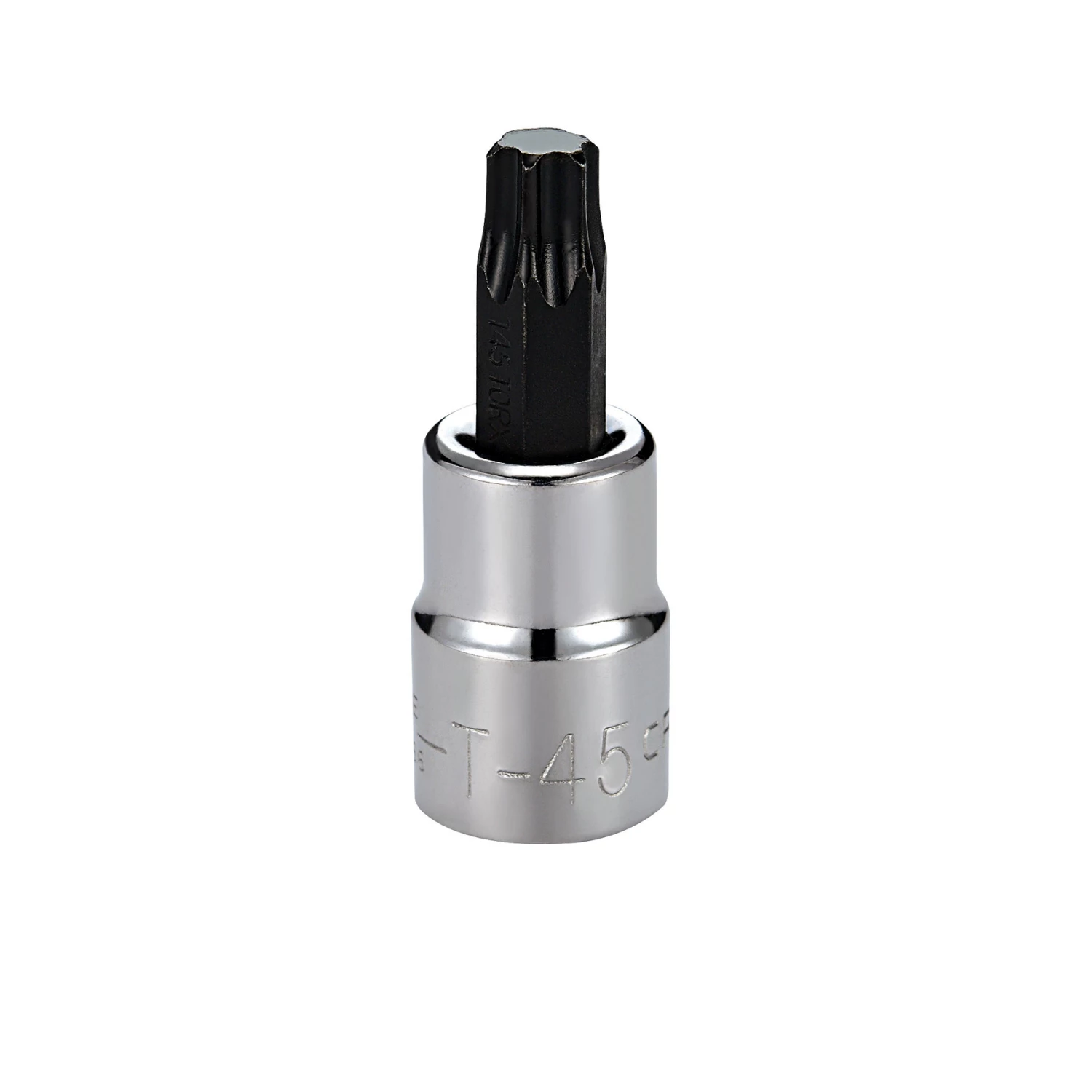 Use the Craftsman T45 Torx bit socket with a torque wrench or ratchet, and you’ll be ready to loosen or tighten screws and bolts. When used with a wrench or ratchet, this alloy steel socket allows you to use just as much or little force as you need.