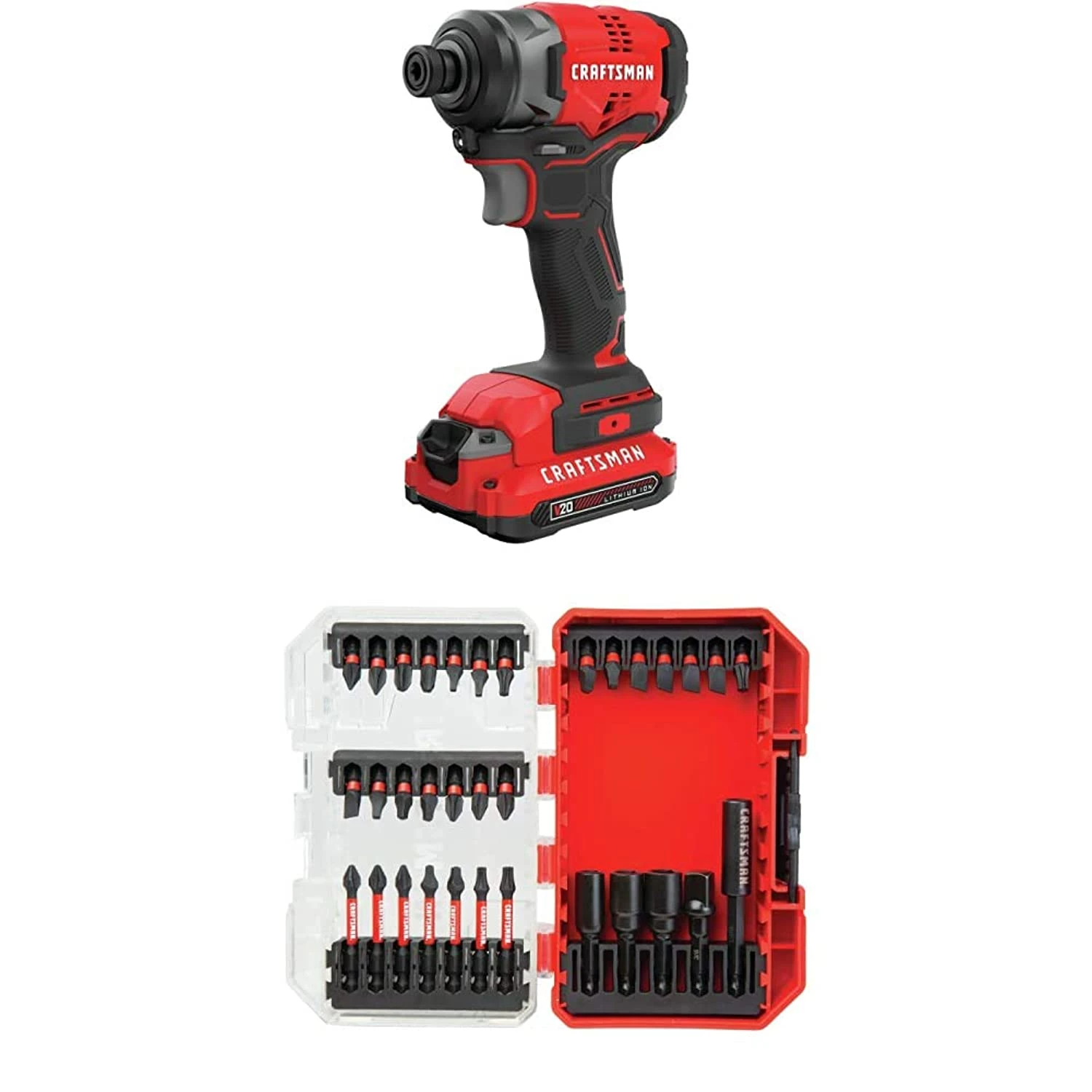 Craftsman V20 Impact Driver Kit, Cordless With Drill/Driver Set, Impact Ready Bits, 33 Pieces (Cmcf810C1 & Cmaf1333)