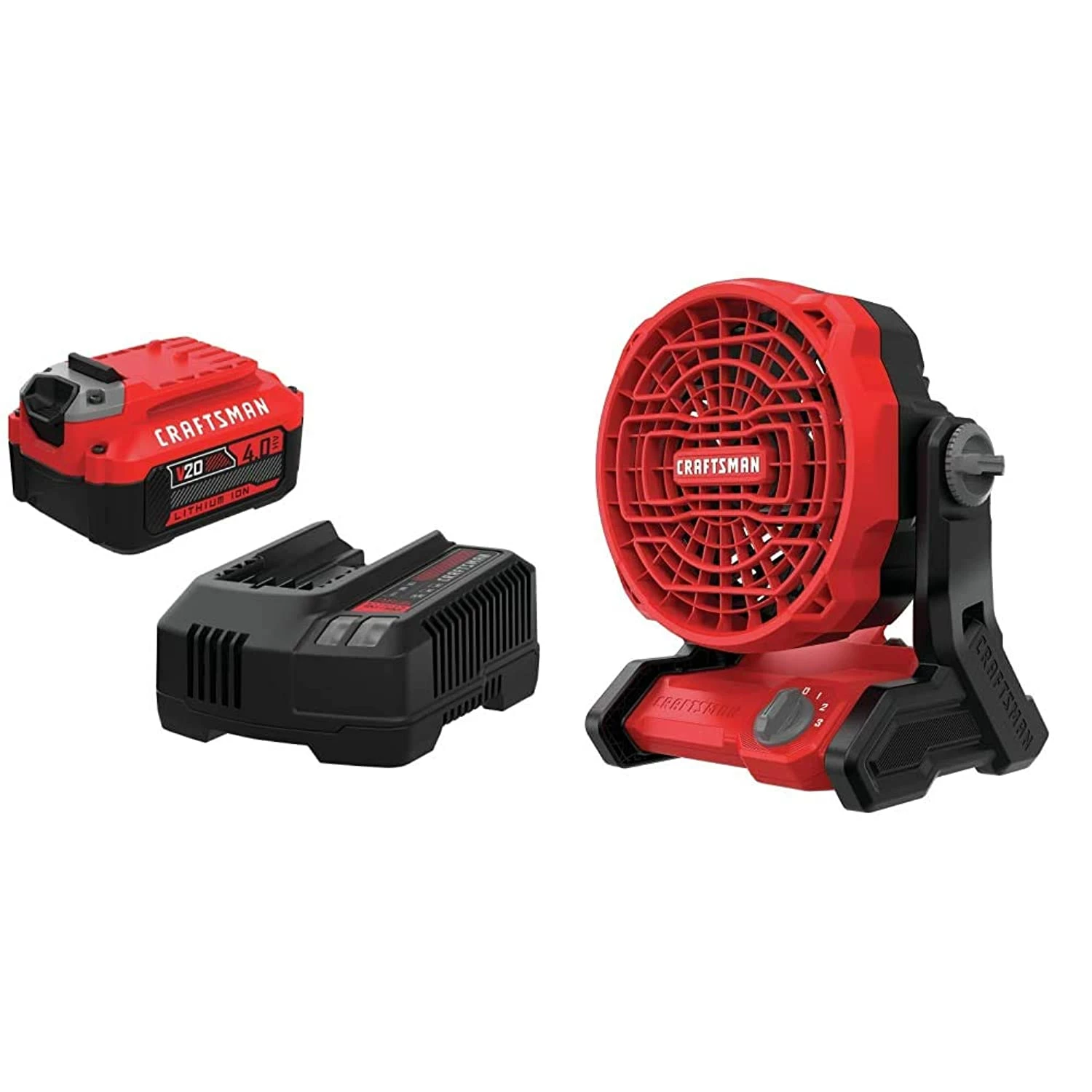 Craftsman V20 Max Cordless Fan With Battery Kit, Charger Included, 4.0-Ah (Cmce001B & Cmcb204-Ck)